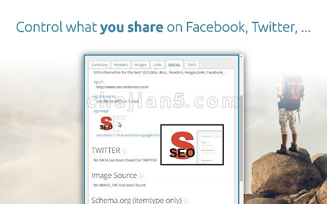 SEO META in 1 CLICK 是一款SEO分析工具,点击插件图标即可立刻弹出含有“标题,描述,关键词,图像,链接”等信息的窗口,可以让你一目了然的看到对方网站的所有信息。